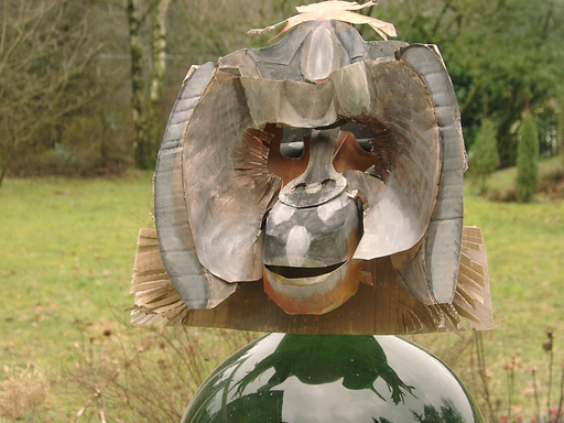 Na een paar eenvoudige maskers ontstand het al redelijk complexe masker van een Orang Oetang man.